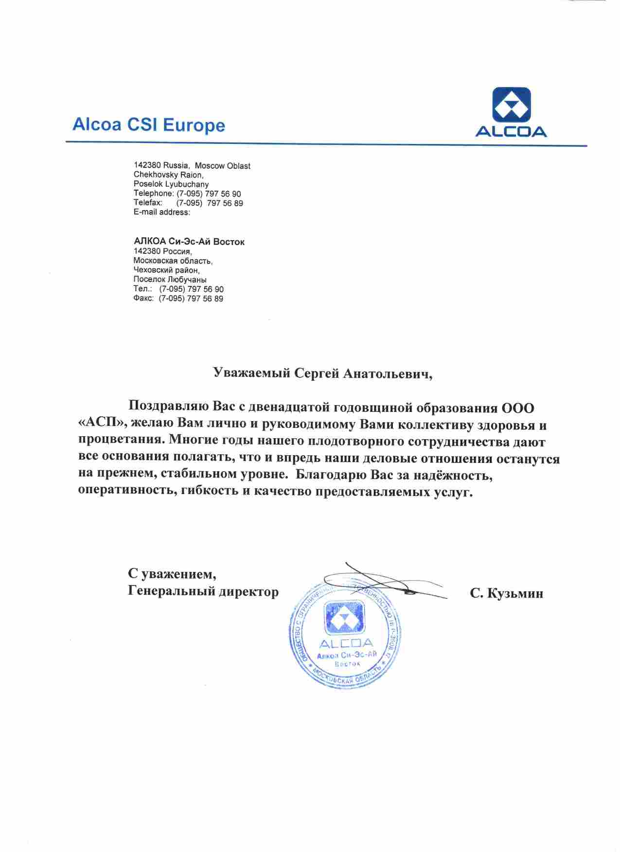 ООО "АЛКОА Си-Эс-Ай Восток" январь 2005
