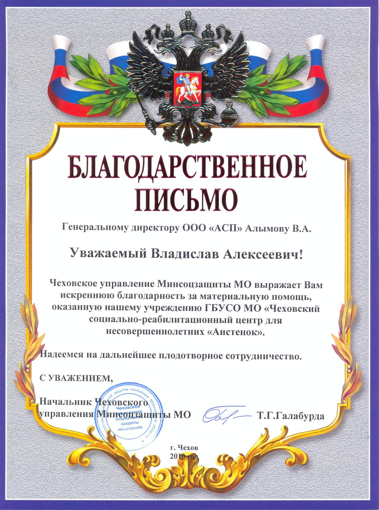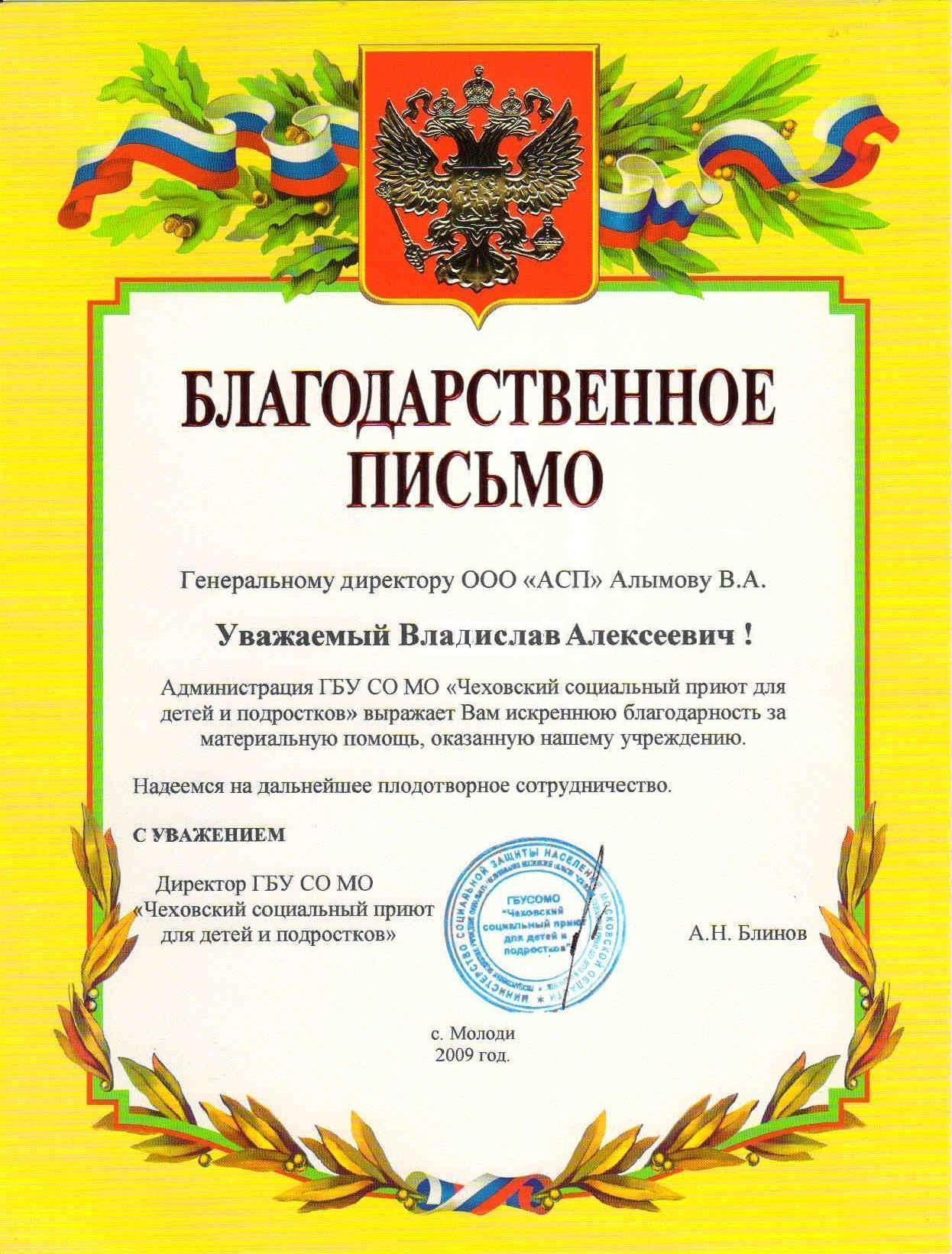 Администрация ГБУ СО МО "Чеховский социальный приют для детей подростков" декабрь 2009