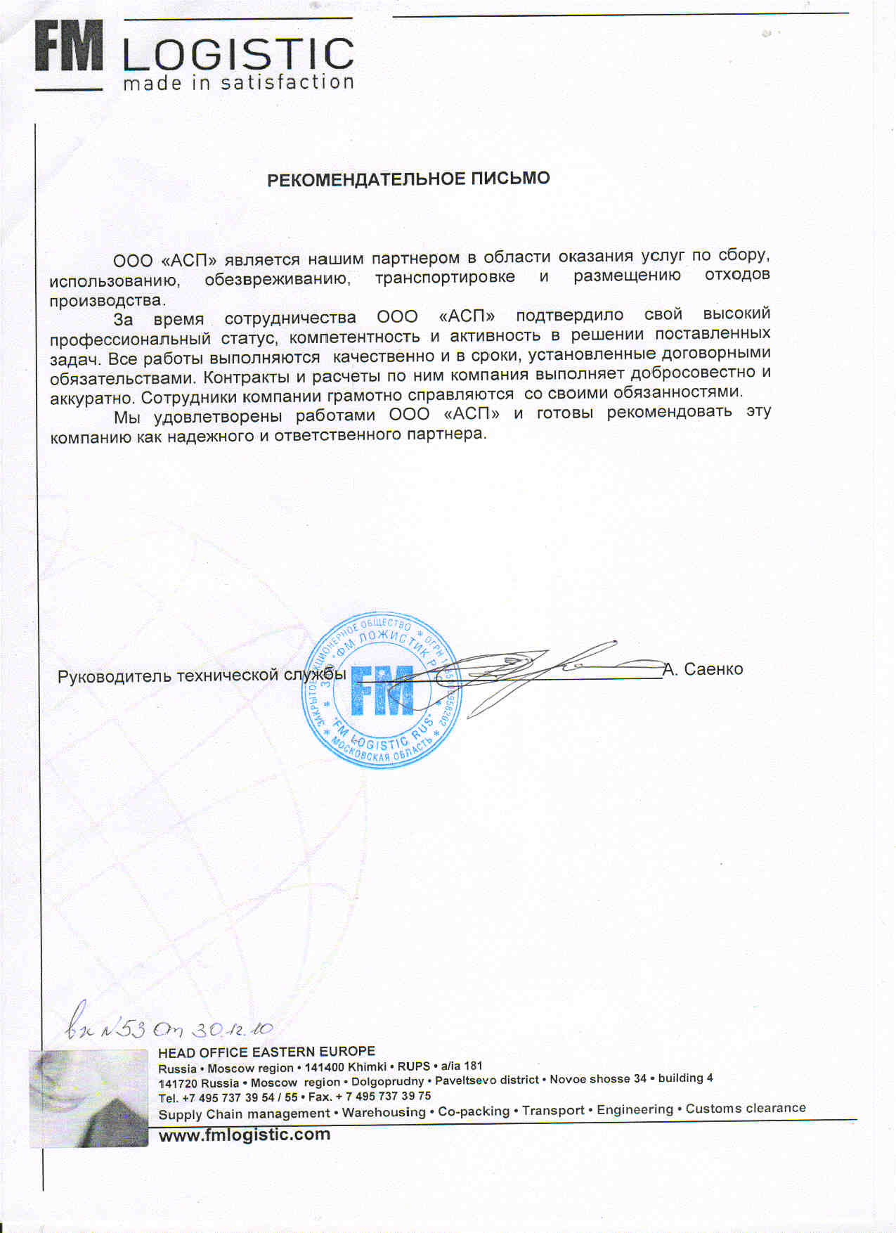 ЗАО "ФМ Ложистик Рус" декабрь 2010